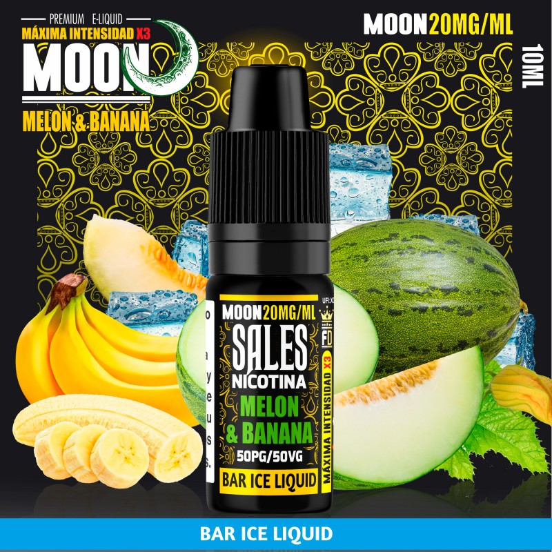 Déjate sorprender por una combinación suave, cremosa y fresca con Melon & Banana 20mg de la colección MOON – Tipo BAR, una sal de nicotina única por su equilibrio entre dulzura tropical y frescor intenso.