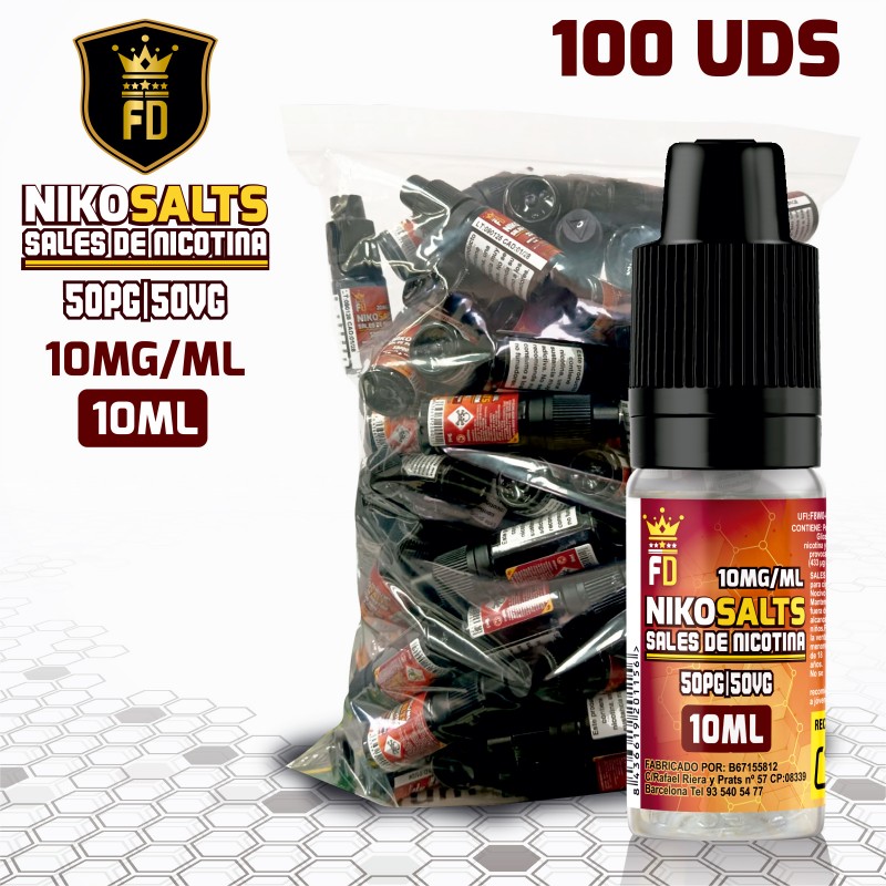 Niko Salts es una base con 10mg de sales de nicotina en formato de 10ml, perfecta para añadir a tus líquidos preferidos y obtener un resultado con nicotina de forma rápida y sencilla. Con una proporción 50/50 (PG/VG), ofrece un golpe suave y una absorción eficiente, ideal para quienes buscan una experiencia más equilibrada y satisfactoria en su vapeo diario.