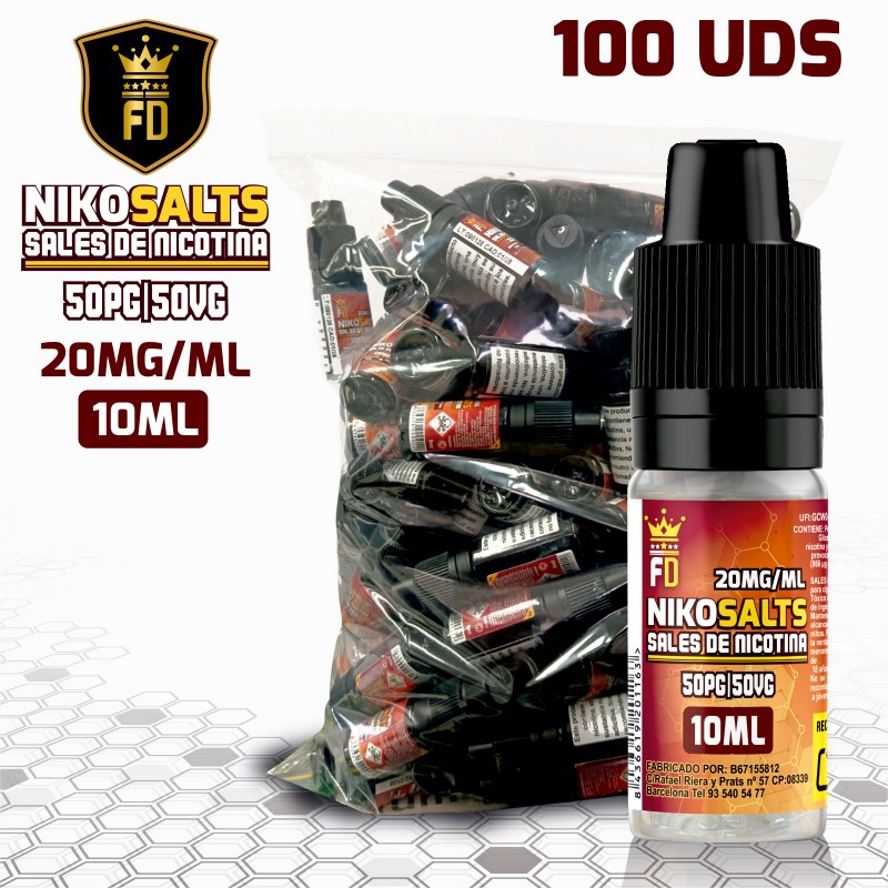 Nuestras sales son una mezcla de nicotina pura y ácido benzoico (Que sirve para bajar los niveles de ph de la nicotina).